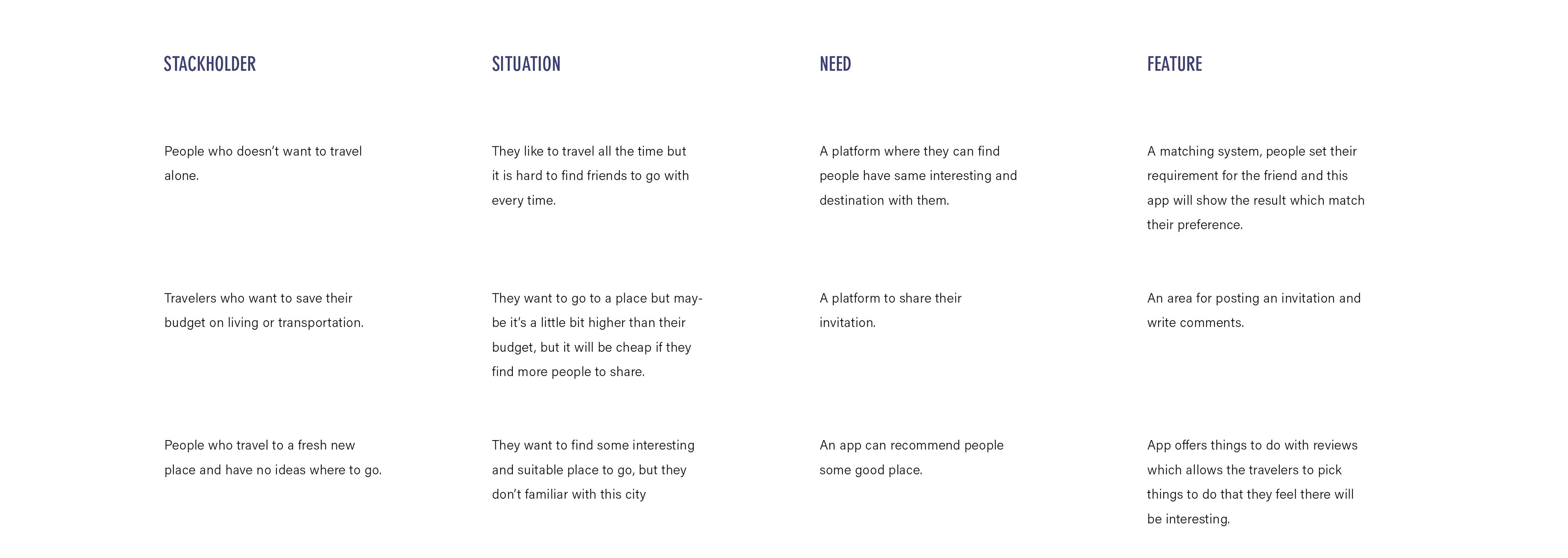 The objective is to design an app facilitates connections among solo travelers. This platform aims to alleviate the solitude of solo journeys by enabling users to find like-minded companions to share in the joys, surprises, and excitement of travel. Through user-centered design principles, the app will prioritize intuitive navigation and seamless interactions, fostering meaningful connections among users.